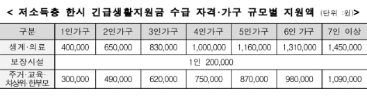 가구마다 상황이 다를 수가 있다고 하며 그때그때 다르다고 하며 따라서 이 부분도 관할 복지담당 공무원에게 문의해야 해요. 또한 기초생활수급자가 현금으로 받을 수 있는 혜택 두 종류 중 한가지로써 기준 중위소득 45% 이하인 가정이 그 혜택을 받을 수 있어요.