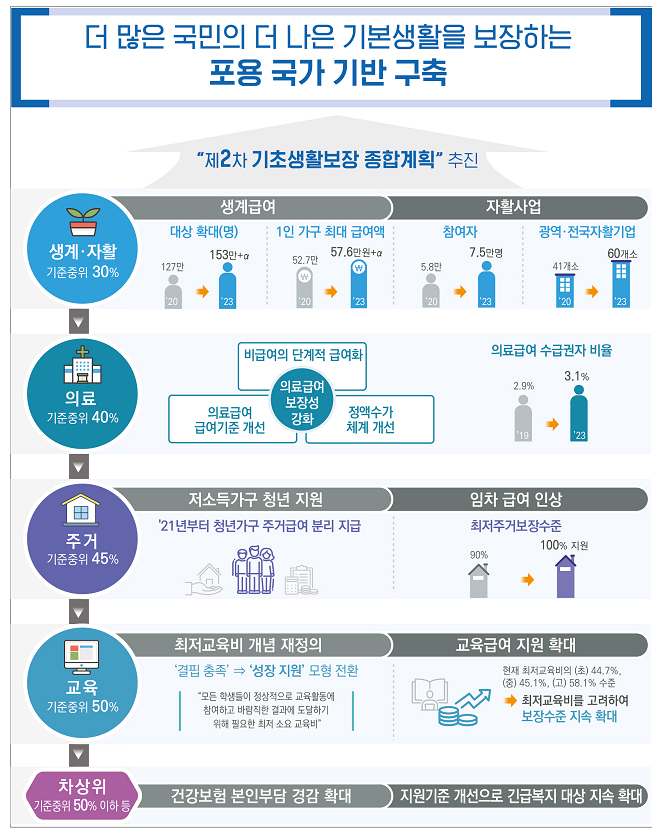 정부에서 기초생활 수급자 및 차상위 계층까지도 지원을 확대하겠다고 했는데요, 기초생활수급자의 생계급여와 받을 수 있는 혜택들을 소개하도록 하겠습니다. 기초생활수급의 해당 여부를 결정하는 기준 중위소득은 기존 수급자들에게는 매우 중요하기 때문에, 2023년 확정된 대상자를 알아보도록 하겠습니다.