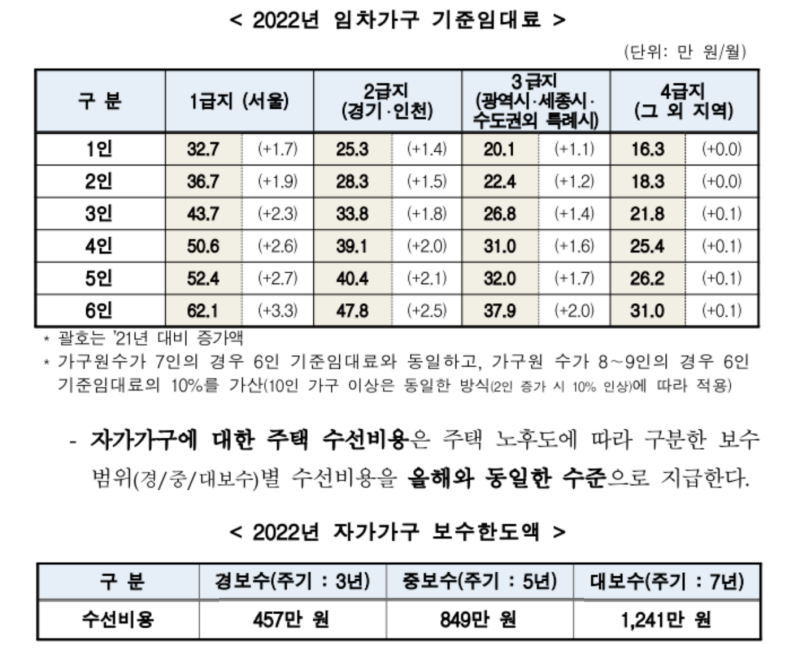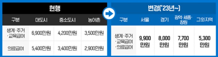 또한 지역 구분이 대도시, 중소도시, 농어촌 3종에서 서울, 경기, 광역과 세종, 창원, 그 외 지역의 4종으로 변경되었습니다.