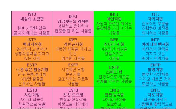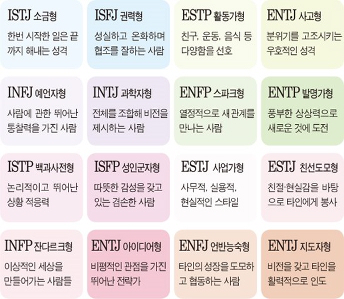 mbti 성격 유형검사 16가지 유형